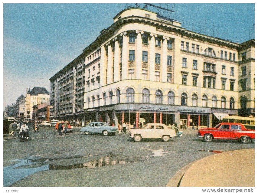 coin des rues Lénine et Kirov - voiture Volga - Riga - 1963 - Lettonie URSS - inutilisée