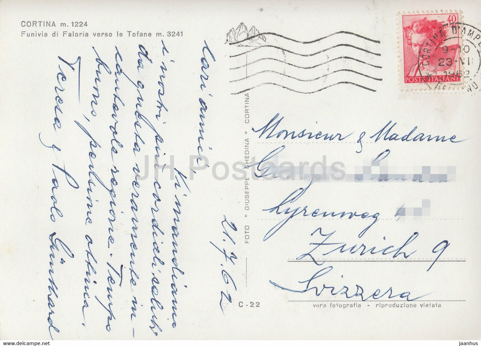 Cortina 1224 m - Funivia di Faloria le Tofane 3241 m - téléphérique - 1962 - Italie - occasion
