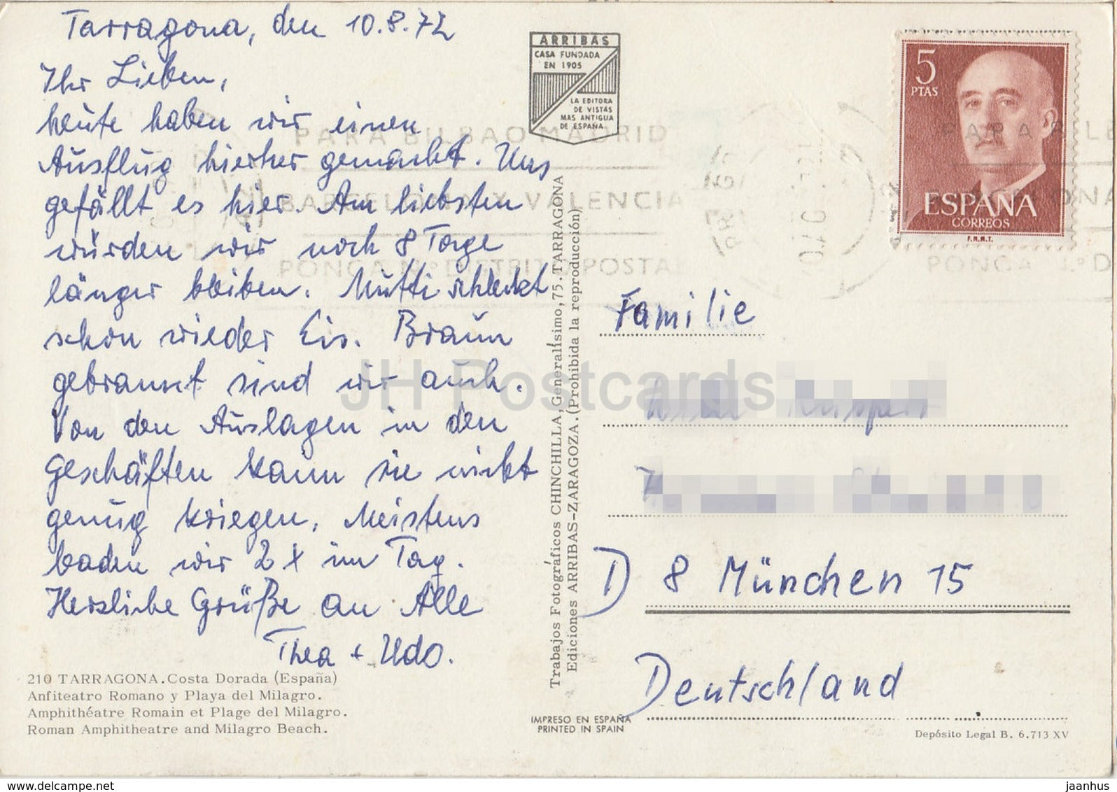 Costa Dorada - Tarragone - Amphithéâtre romain et plage de Milagro - 210 - 1972 - Espagne - d'occasion