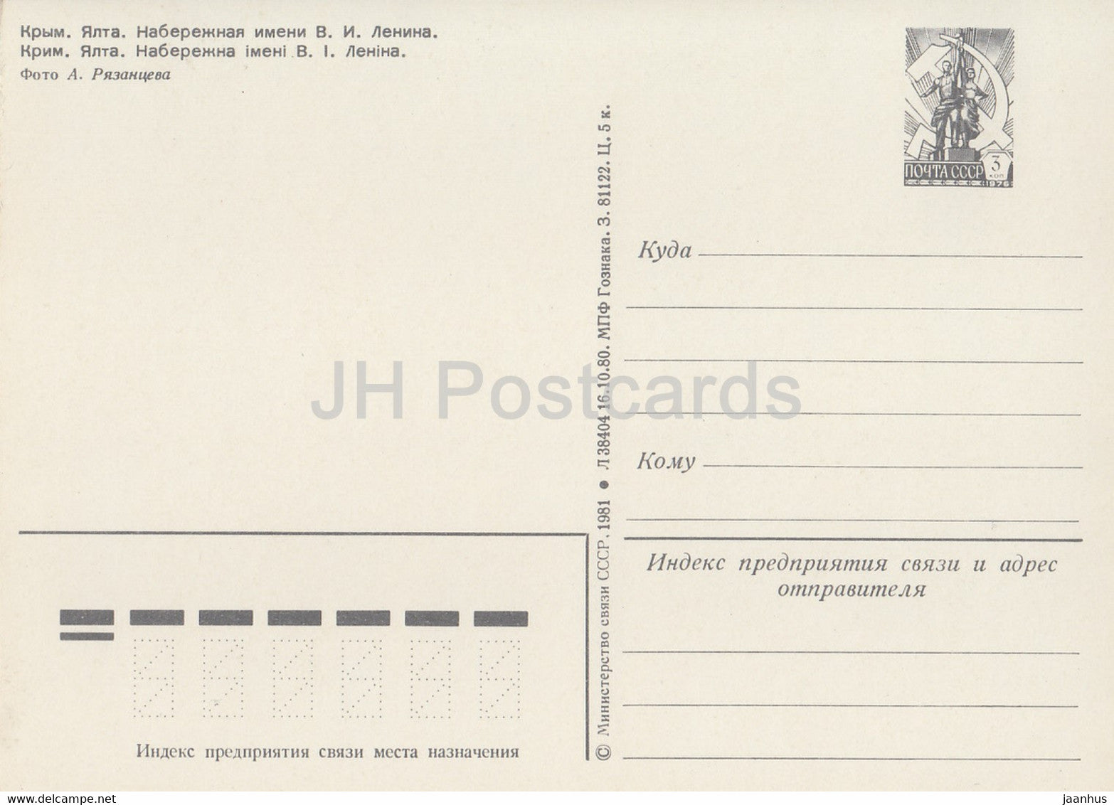 Crimée - Yalta - Quai Lénine - navire - entier postal - 1981 - Ukraine URSS - inutilisé
