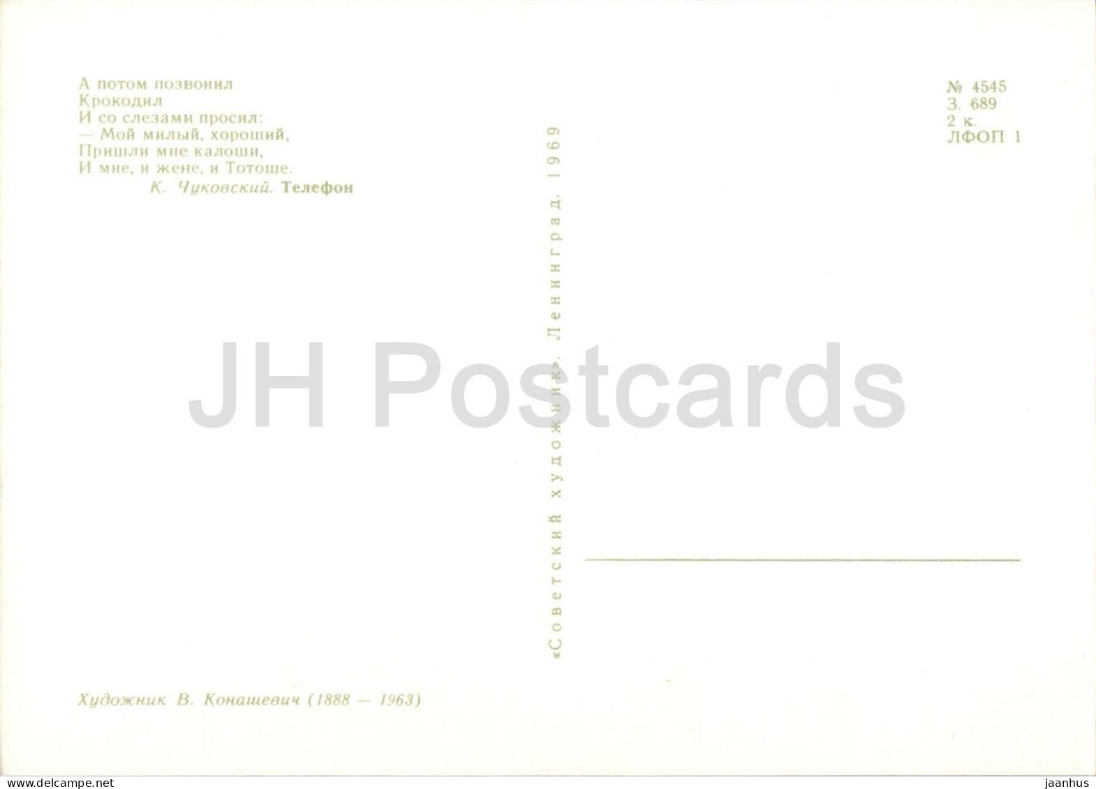crocodile - palmier - téléphone - Conte de fées de Tchoukovski - illustration - 1969 - Russie URSS - inutilisé