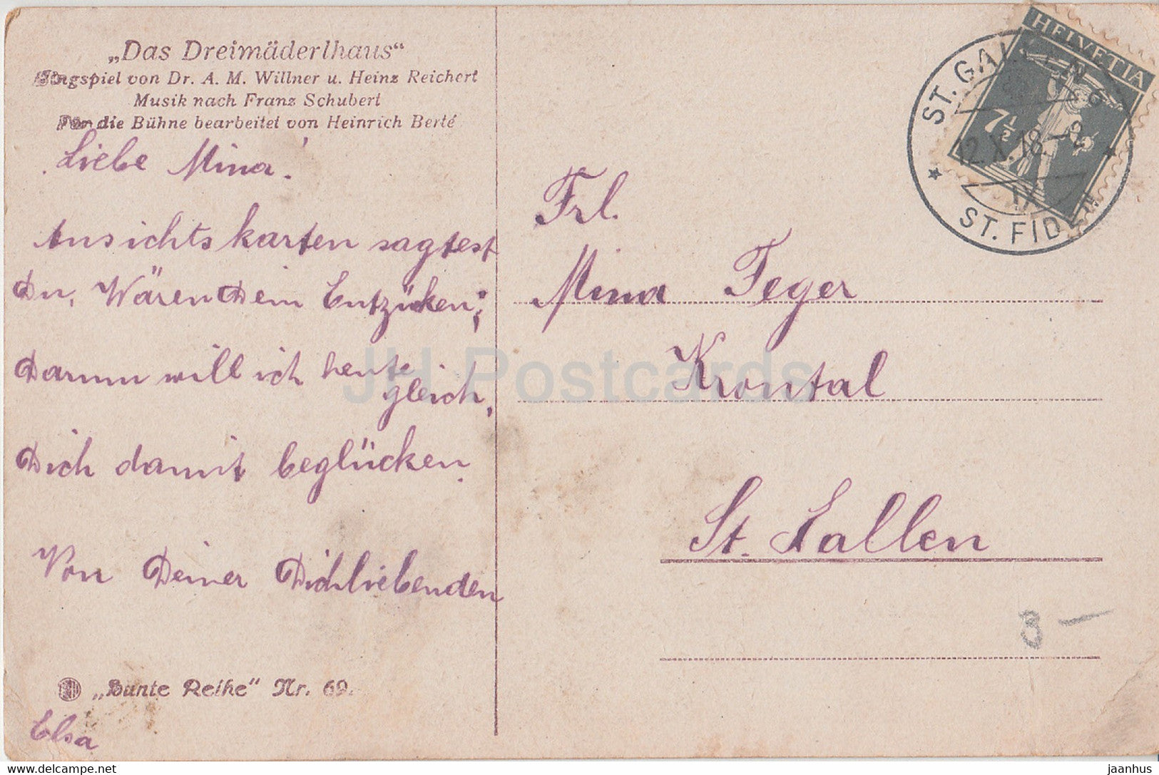 Das Dreimadlerhaus - Franz Schubert - Bunte Reihe - carte postale ancienne - 1918 - Allemagne - utilisé