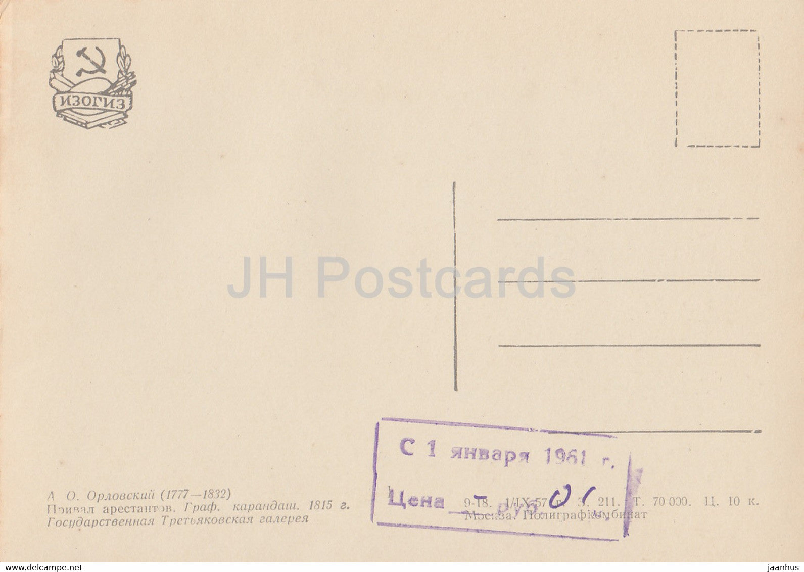 Dessin de A. Orlovsky - Arrêt des prisonniers - Art russe - 1957 - Russie URSS - inutilisé