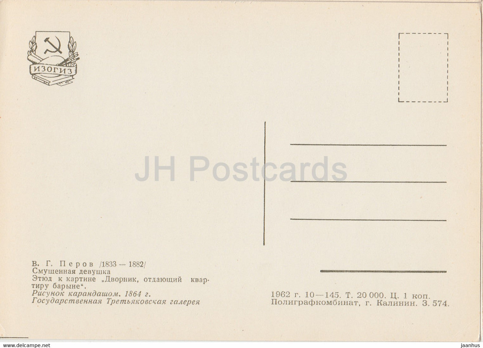 dessin de V. Perov - Fille confuse - Art russe - 1962 - Russie URSS - inutilisé
