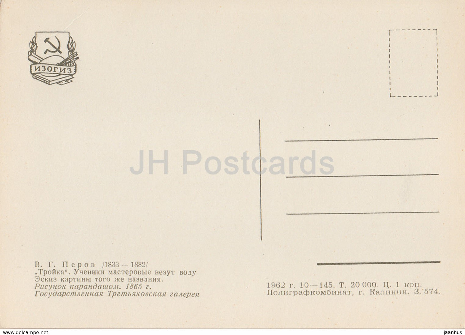dessin de V. Perov - Troïka - garçons - Art russe - 1962 - Russie URSS - inutilisé