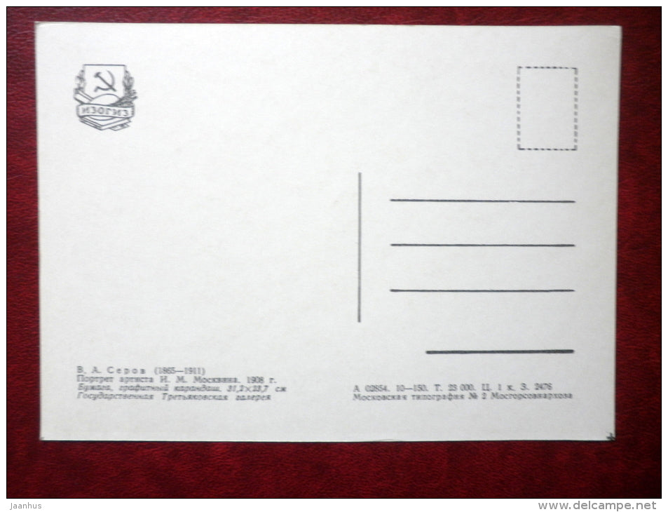 dessin de V. Serov - portrait de l'acteur I. Moskvin, 1908 - art russe - inutilisé