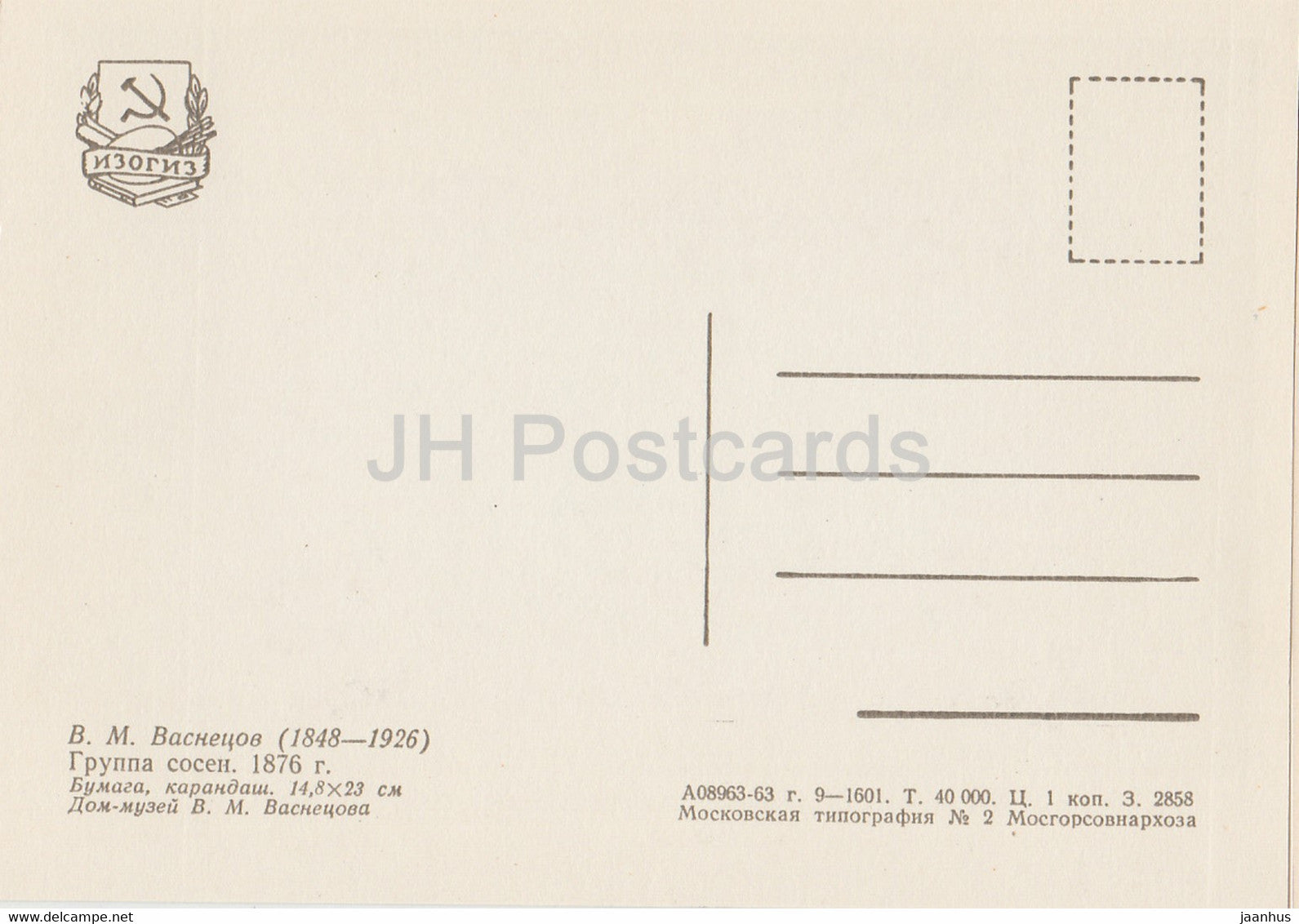 Dessin de V. Vasnetsov - Groupe de pins - Art russe - 1963 - Russie URSS - inutilisé