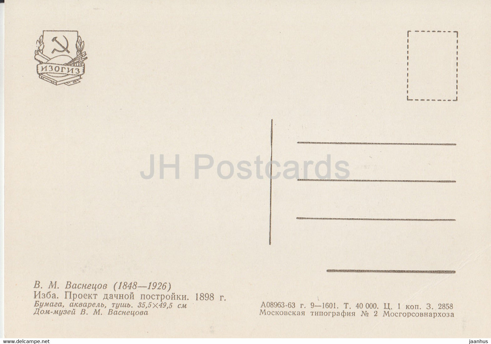 Dessin de V. Vasnetsov - Izba . Projet de maison de campagne - Art russe - 1963 - Russie URSS - inutilisé