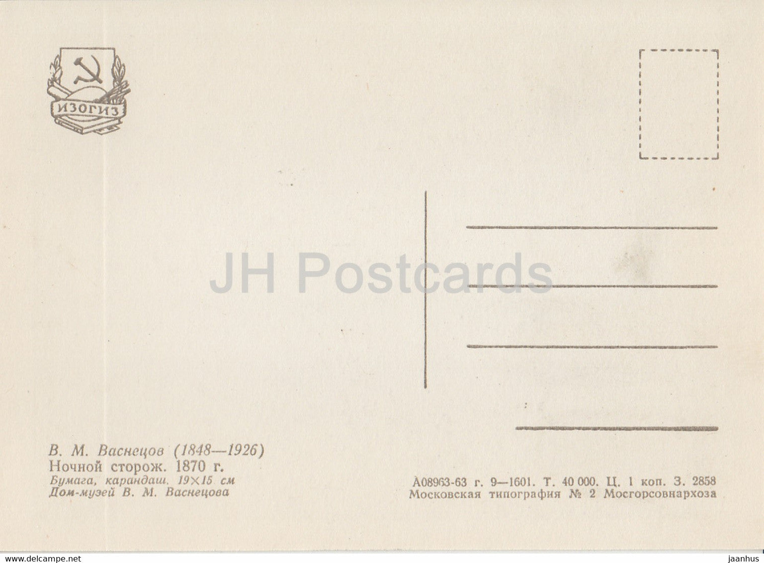 Dessin de V. Vasnetsov - Veilleur de nuit - Art russe - 1963 - Russie URSS - inutilisé