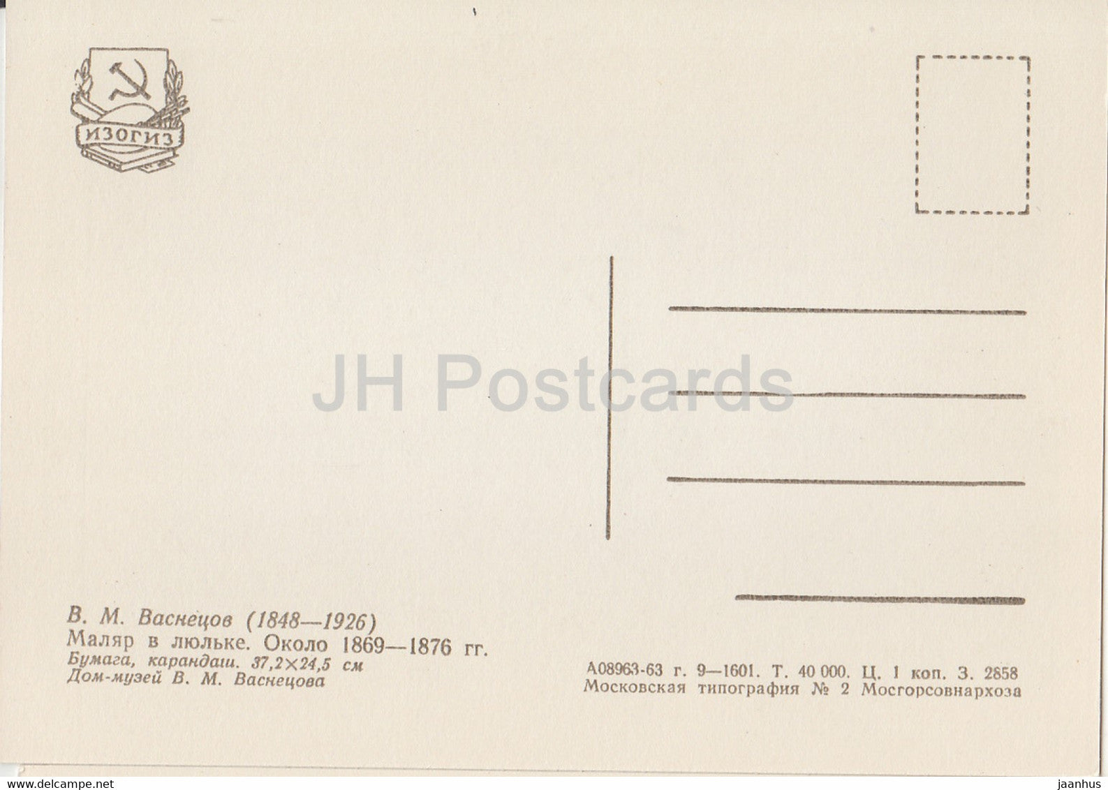 Dessin de V. Vasnetsov - Peintre au berceau - Art russe - 1963 - Russie URSS - inutilisé