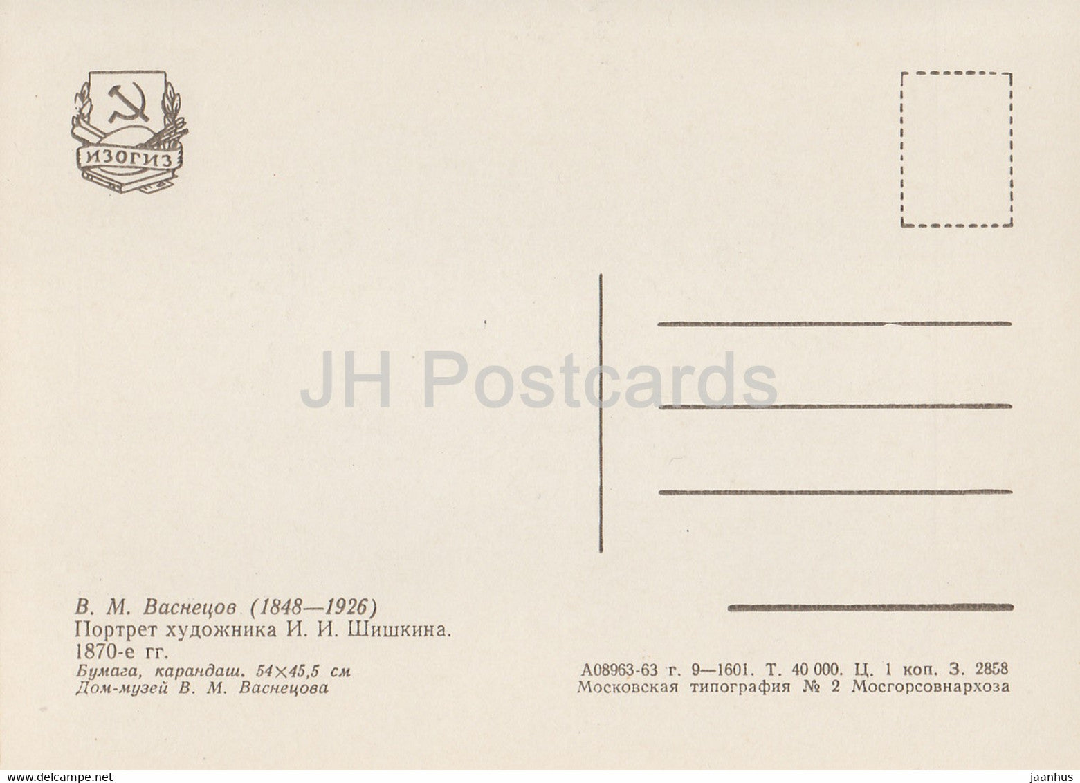 Dessin de V. Vasnetsov - Portrait de l'artiste russe Shishkin - Art russe - 1963 - Russie URSS - inutilisé