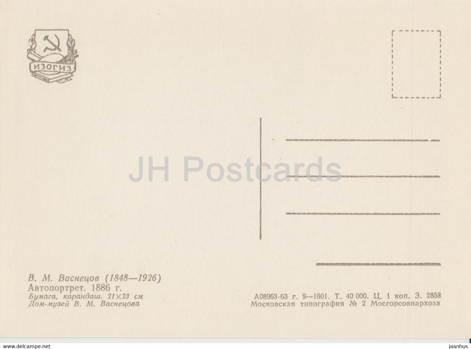Dessin de V. Vasnetsov - Autoportrait - Art russe - 1963 - Russie URSS - inutilisé