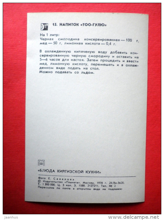 boire Too-Gulyu - recettes - Plats kirghizes - 1978 - Russie URSS - inutilisé