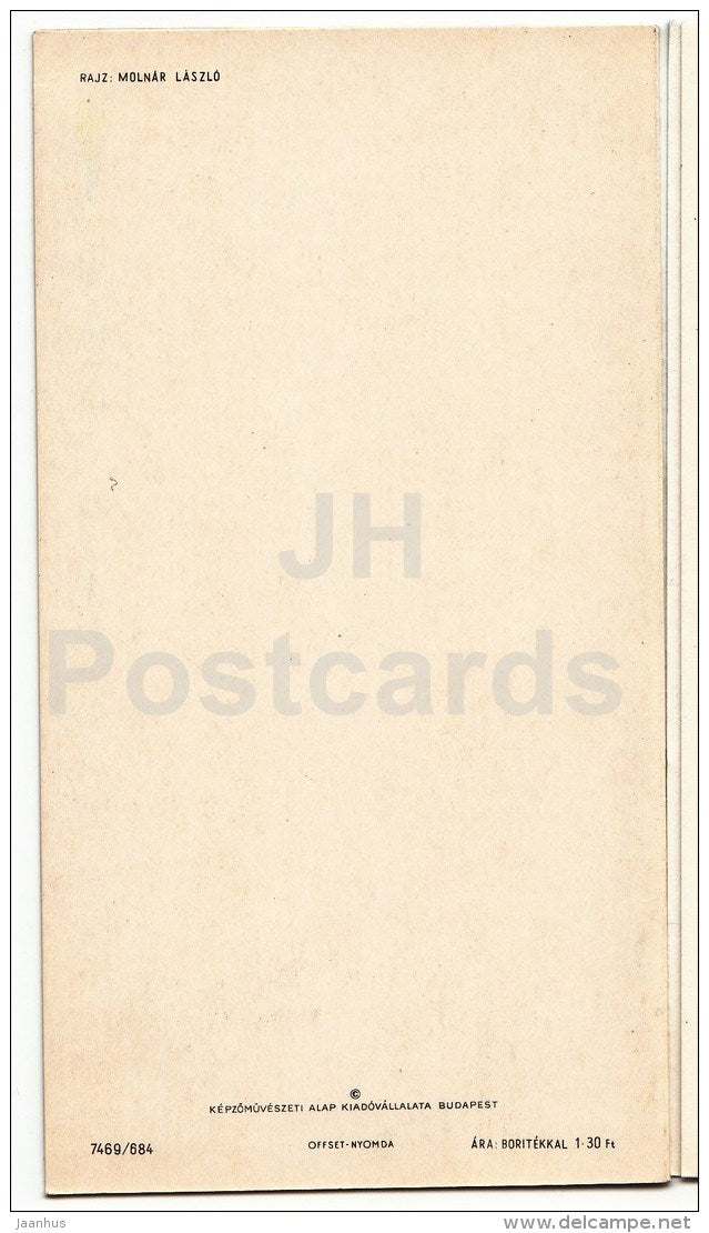 Carte de vœux de Pâques de Molnar Laszlo - œuf décoré - illustration - Hongrie - utilisée