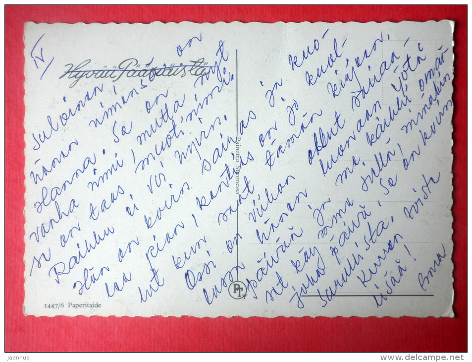 Carte de vœux de Pâques - tulipe - fleurs - lièvre - 1447/6 - Finlande - utilisée en Finlande