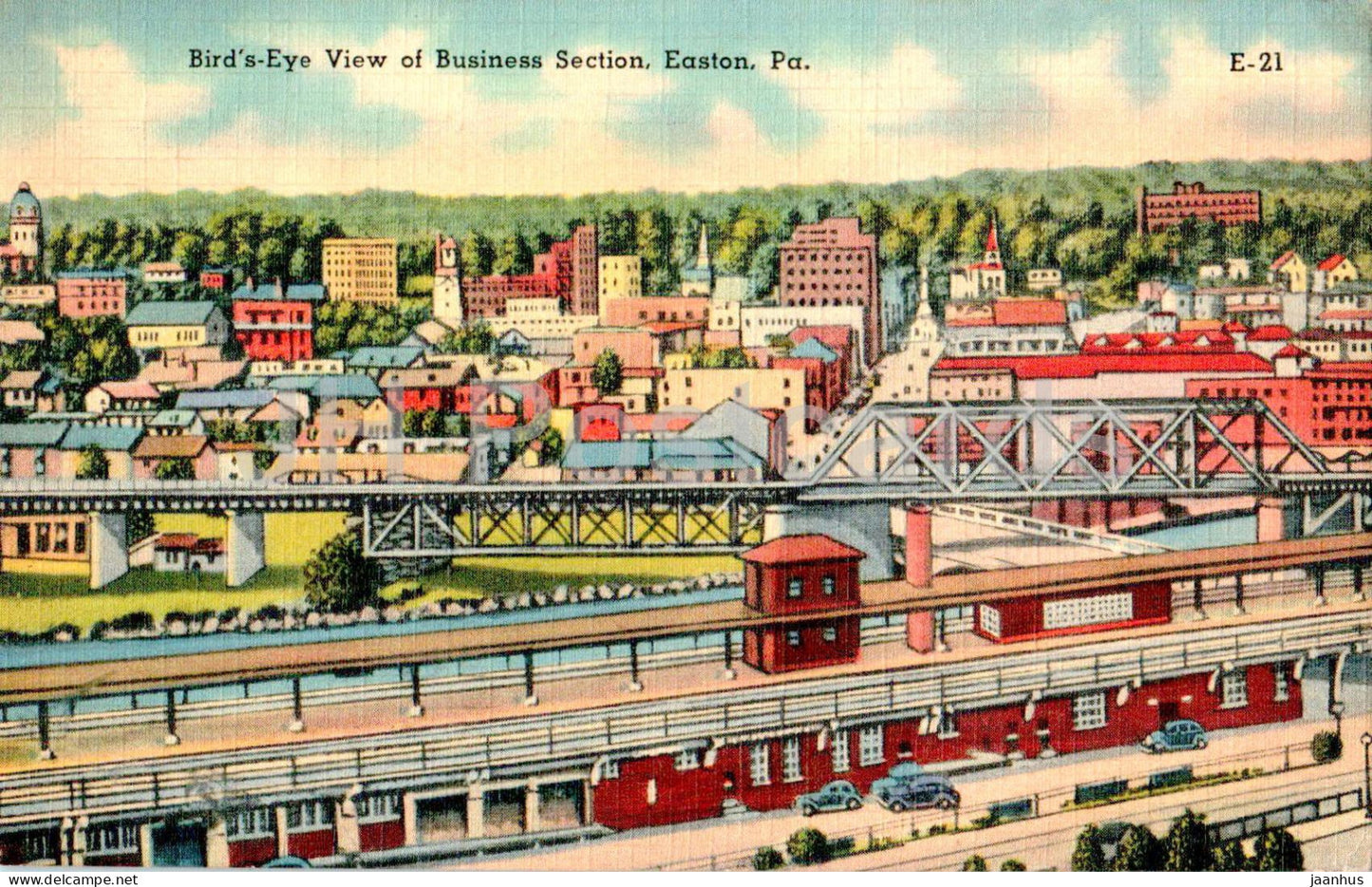 Easton - Vue aérienne de la section commerciale - PA - E-21 - carte postale ancienne - 1948 - États-Unis - utilisé