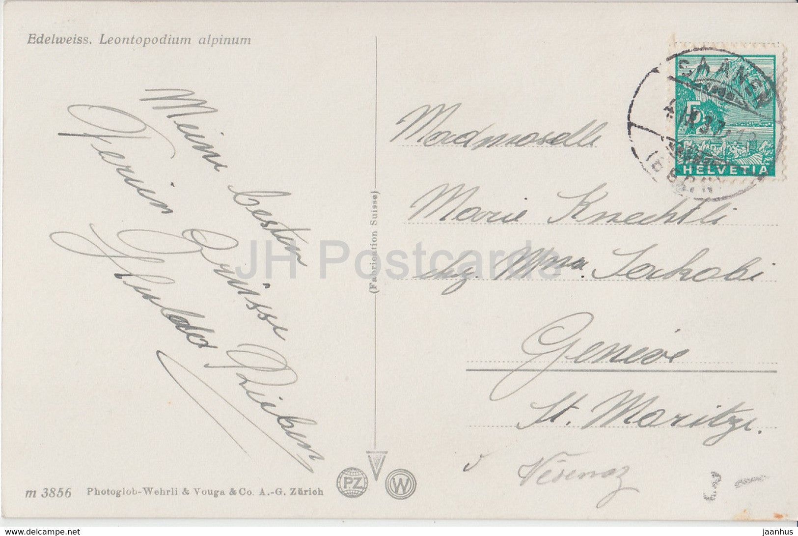 Edelweiss - Leontopodium alpinum - Fleurs - Photochromie 4048 - carte postale ancienne - 1937 - Suisse - utilisé