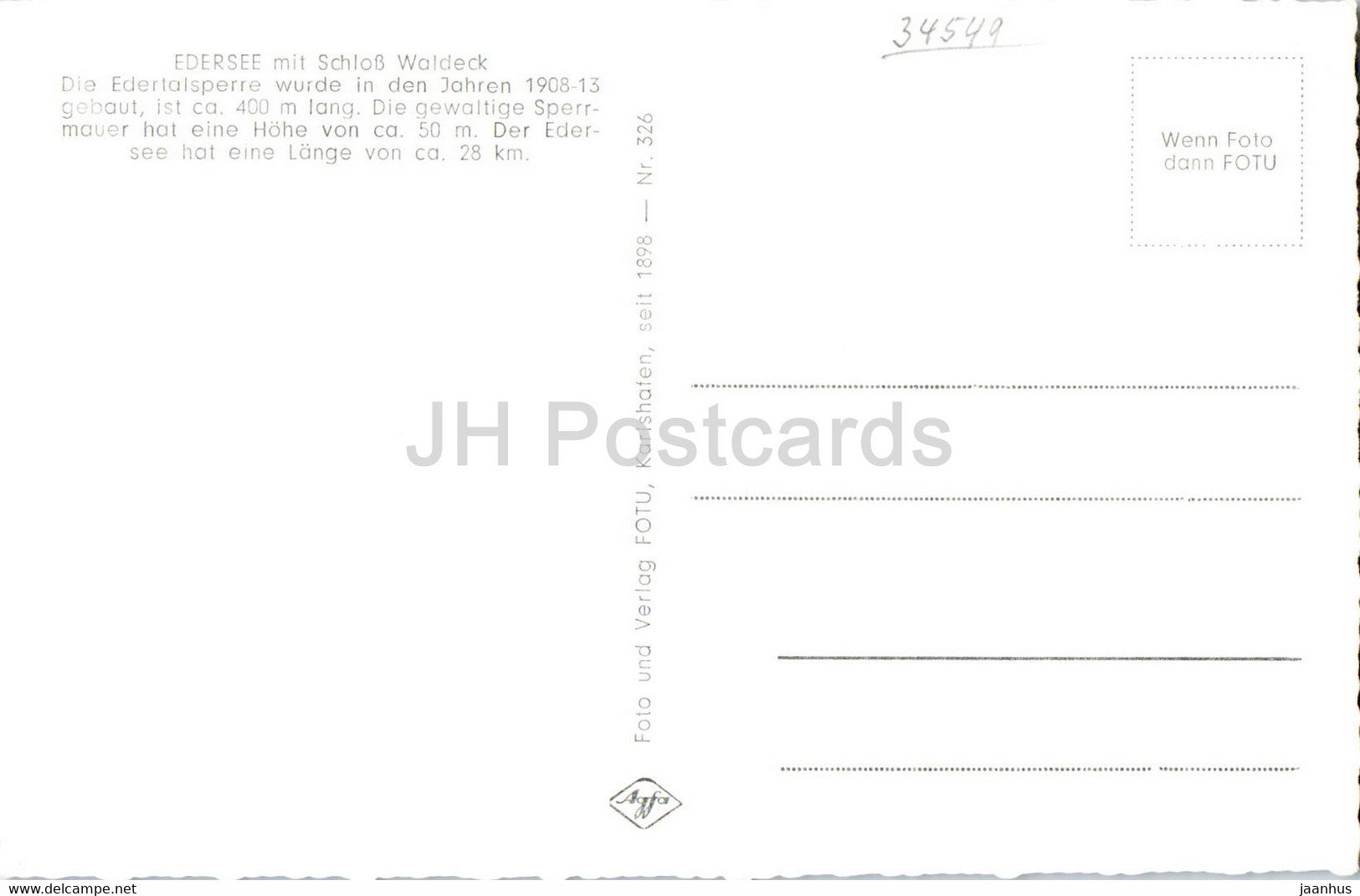 Edersee mit Schloss Waldeck - carte postale ancienne - Allemagne - inutilisée