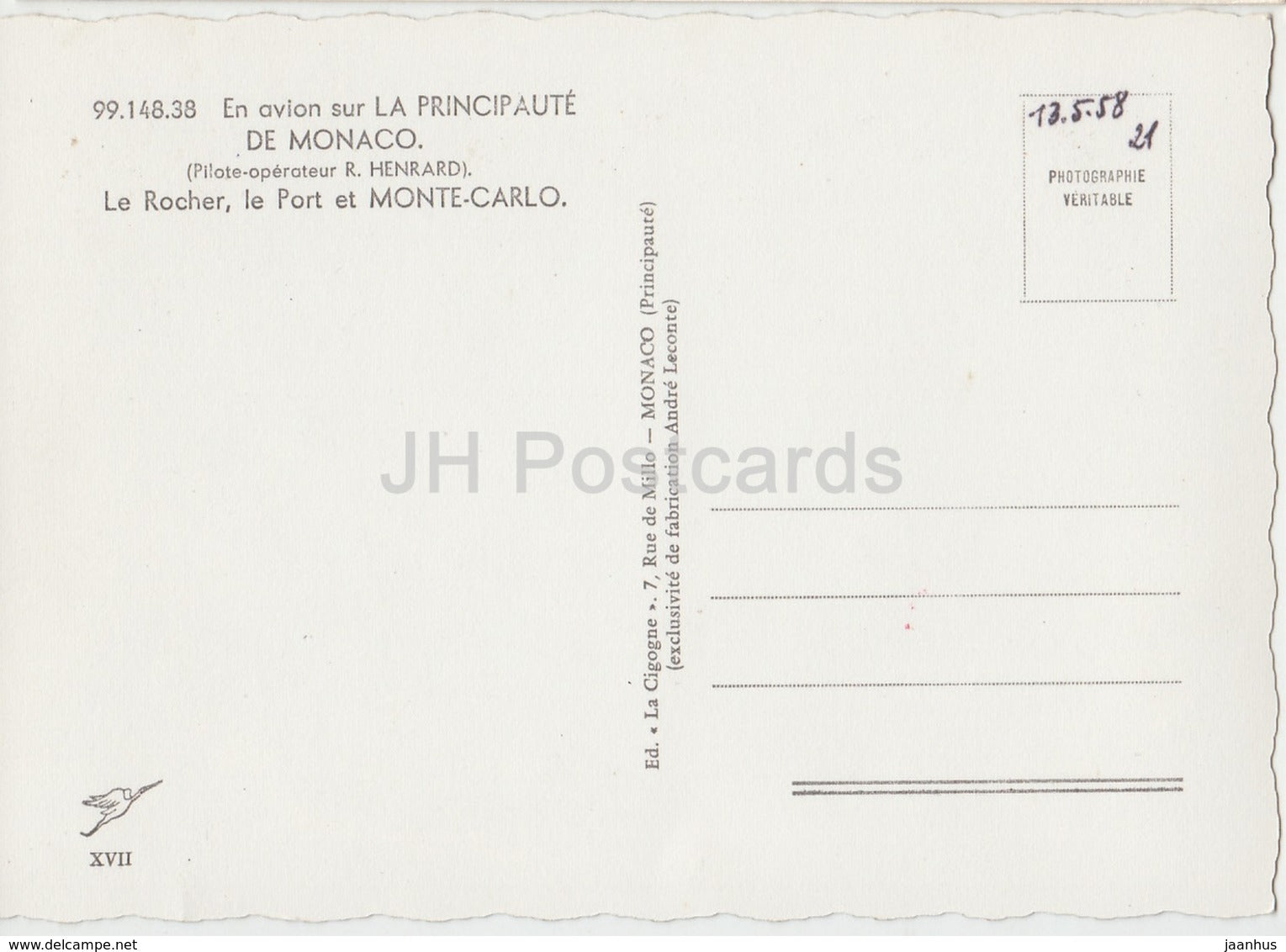 en avion sur Monte-Carlo - Le Rocher - Le Port -1958 - Monaco - occasion