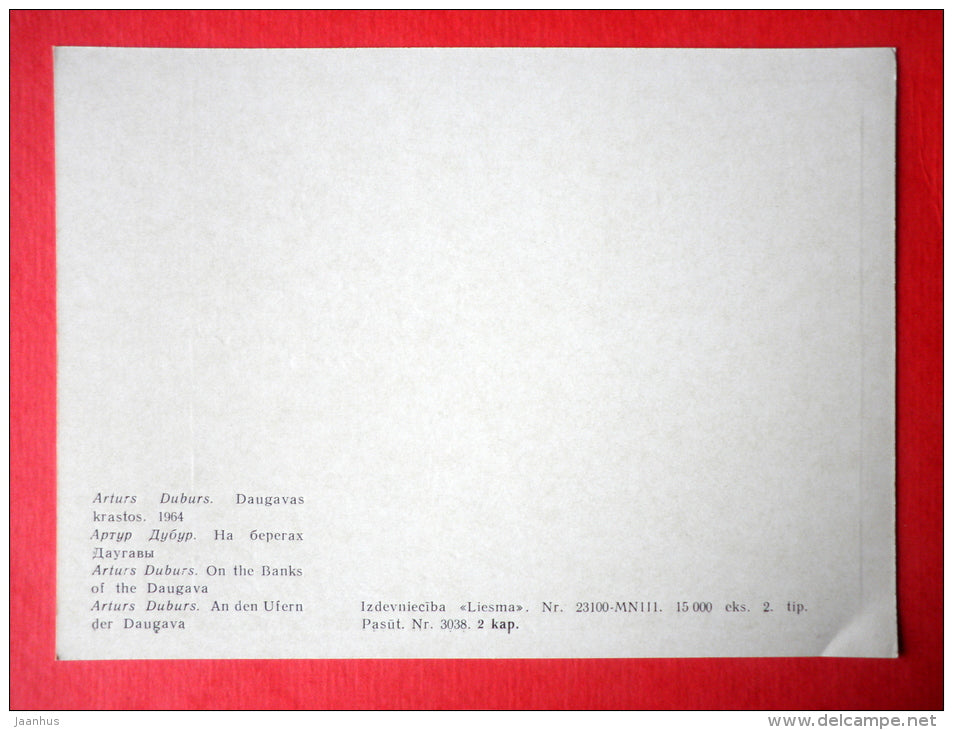 gravure d'Arturs Duburs - Sur les rives de la Daugava - bateau à voile - art letton - inutilisé