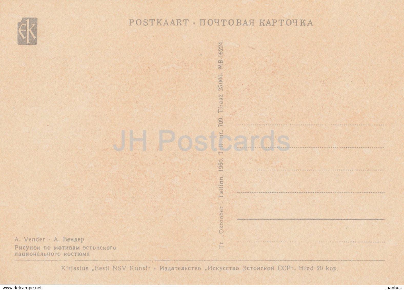Costumes folkloriques estoniens - Ansekula - illustration de A. Vender - 1960 - Estonie URSS - inutilisé