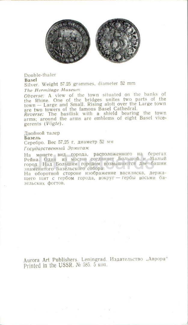 Villes européennes sur pièces de monnaie - Bâle - Double Thaler - 1973 - Russie URSS - inutilisé