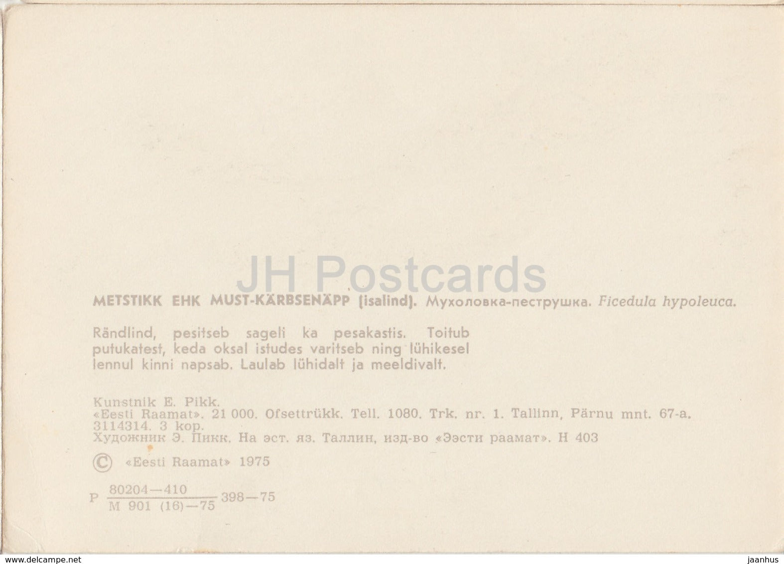 Moucherolle pie européen - Ficedula hypoleuca - oiseaux - illustration de E. Pikk - 1975 - Estonie URSS - inutilisé