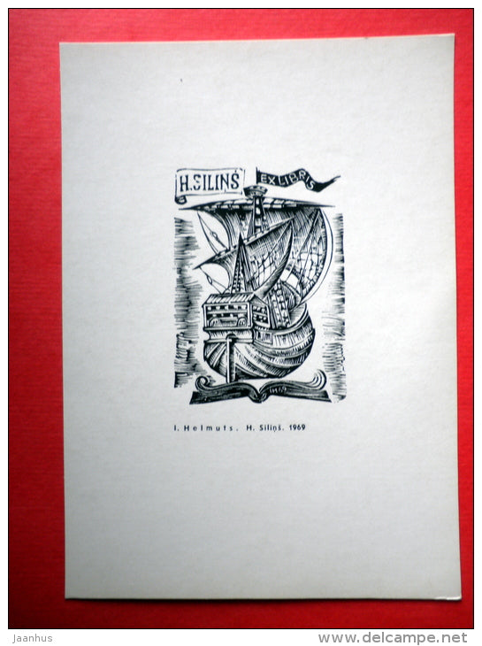 Ex Libris - H. Silnis - illustration de L. Helmuts - voilier - 1975 - Lettonie URSS - inutilisé