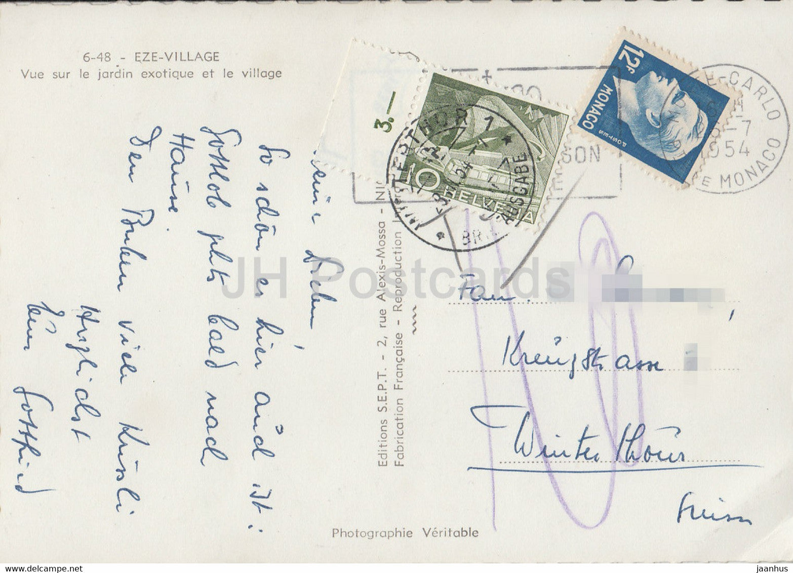 Eze Village - Vue Sur le Jardin exotique et le village - carte postale ancienne - 1954 - France - occasion