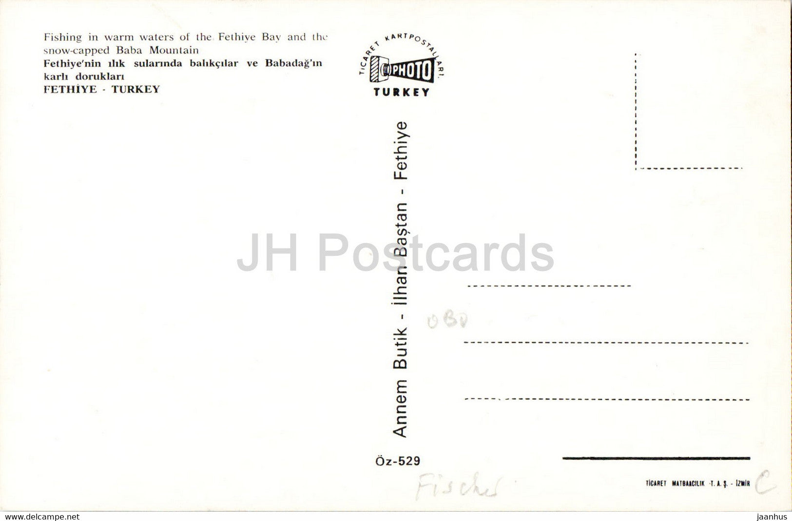 Fethiye - Pêche dans les eaux chaudes de la baie de Fethiye et de la montagne Baba enneigée - bateau - Photo - Turquie - inutilisé