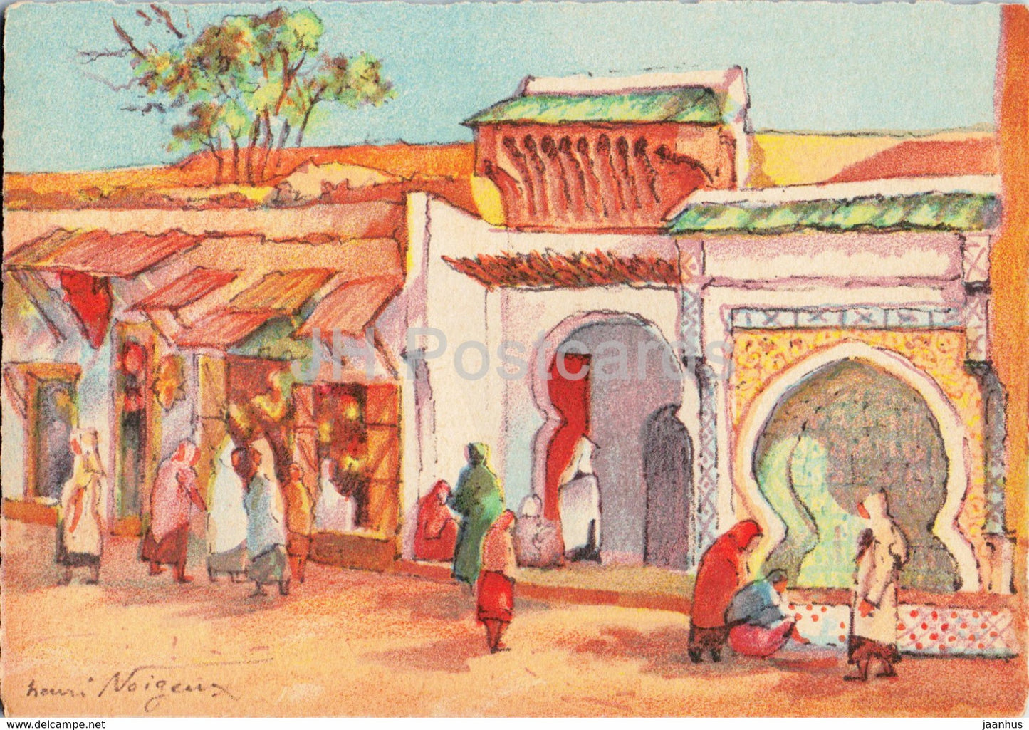 Fès - Grande Rue Djédia - illustration de Henri Noizeux - Maroc - inutilisé
