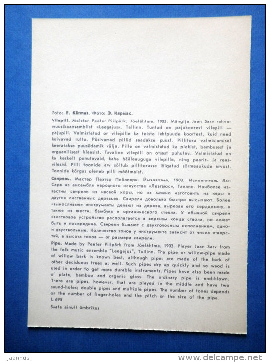 Fife - Instruments folkloriques estoniens - costume folklorique - 1979 - Estonie URSS - inutilisé