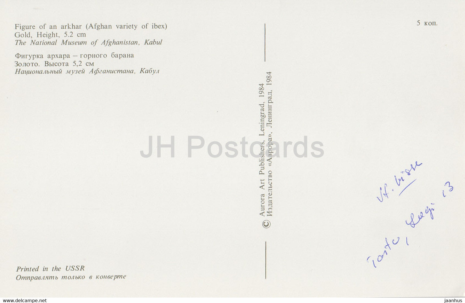Figure d'un Arkhar - bouquetin - Musée national d'Afghanistan - archéologie - Or de Bactriane - 1984 - URSS Russie - utilisé