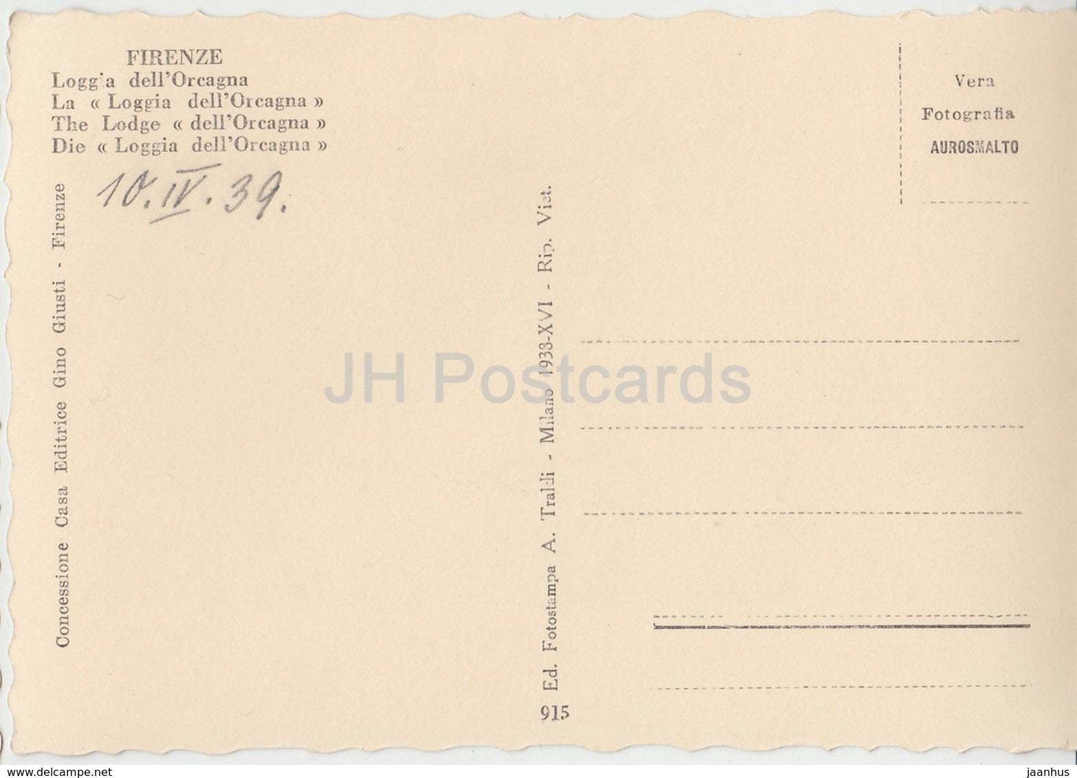 Firenze - Florence - La Loggia dell'Orcagna - lodge - 935 - 1939 - carte postale ancienne - Italie - utilisé