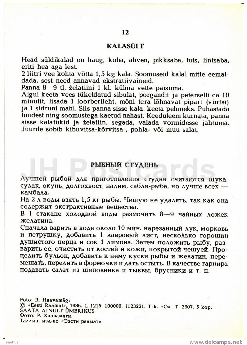 Gelée de poisson - Plats de poisson - nourriture - recettes - 1986 - Estonie URSS - inutilisé