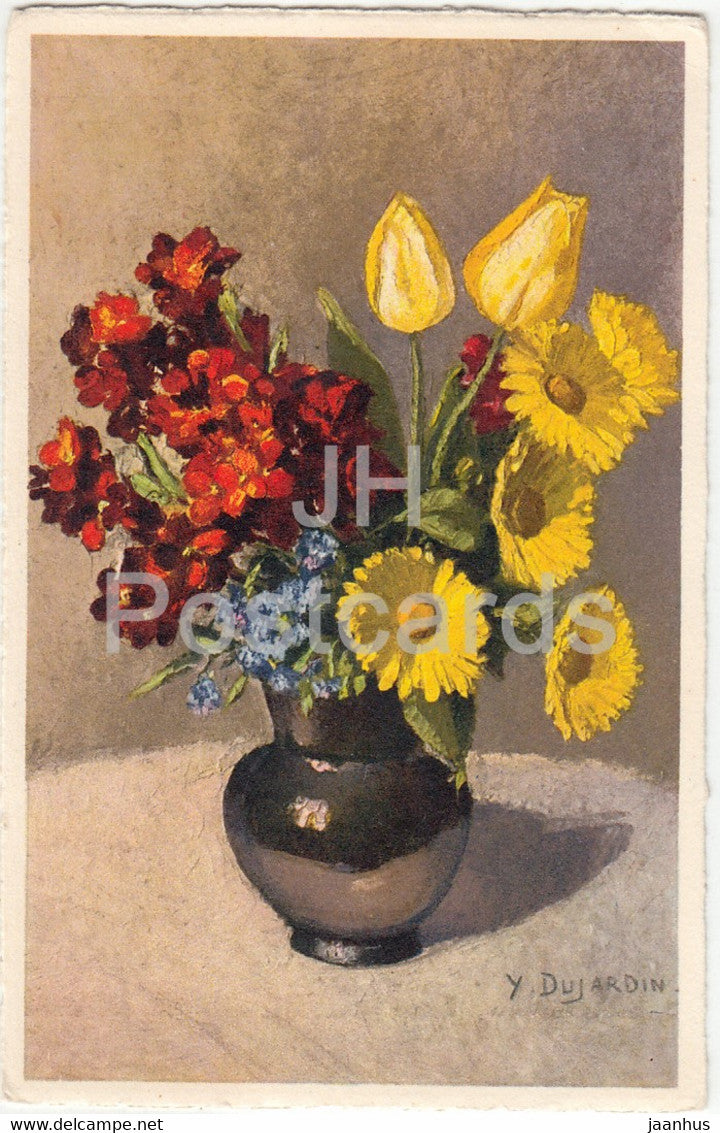fleurs dans un vase - illustration de Dujardin - 534 - carte postale ancienne - Suisse - inutilisée