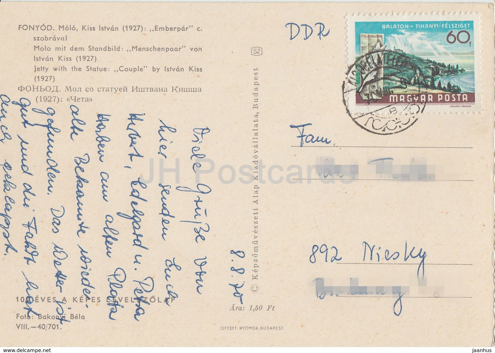 Fonyod - Jetée avec la statue Couple d'Istvan Kiss - 1970 - Hongrie - d'occasion
