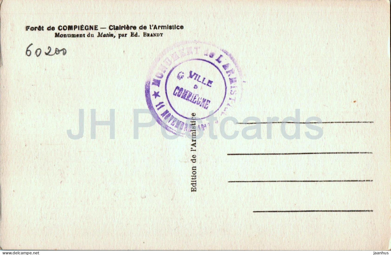 Forêt de Compiègne - Clairière de l'Armistice - monument - carte postale ancienne - France - inutilisée