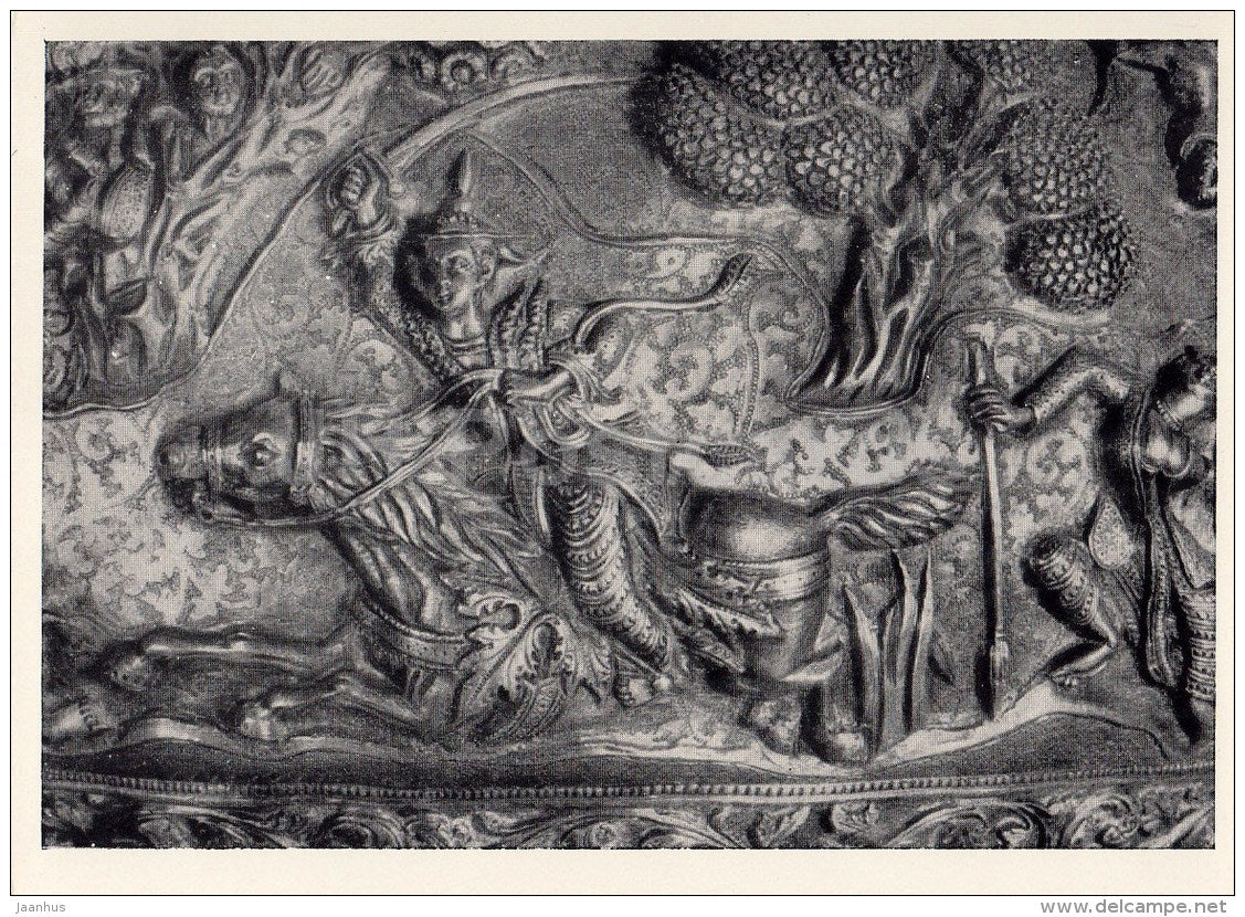 Fragment de dessin ciselé - guerrier - cheval - Art birman - 1964 - Russie URSS - inutilisé