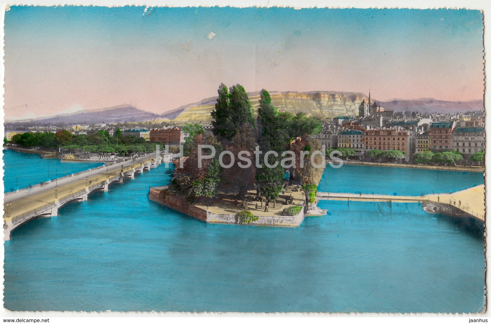 Genève - Genève - Île J.-J. Rousseau et le Mont Blanc - 7001 - Suisse - carte postale ancienne - occasion