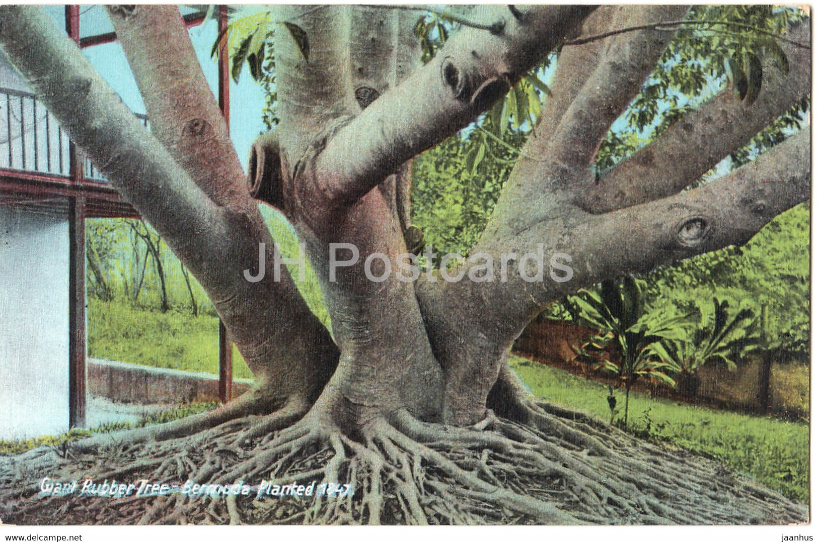 Arbre à caoutchouc géant - Bermudes - Planté en 1847 - carte postale ancienne - Bermudes - inutilisé