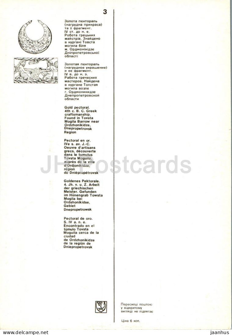 pectoral en or - Musée des trésors historiques de l'Ukraine - 1979 - Ukraine URSS - inutilisé