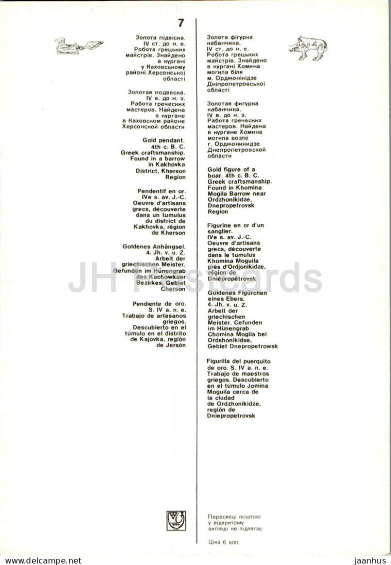 pendentif en or - figure de sanglier en or - animaux - Musée des trésors historiques d'Ukraine - 1979 - Ukraine URSS - inutilisé