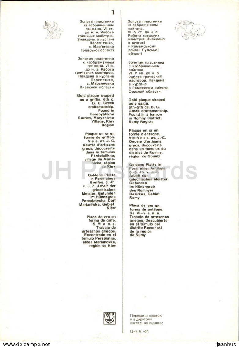 plaque d'or en forme de griffon - saïga - Musée des trésors historiques d'Ukraine - 1979 - Ukraine URSS - inutilisé