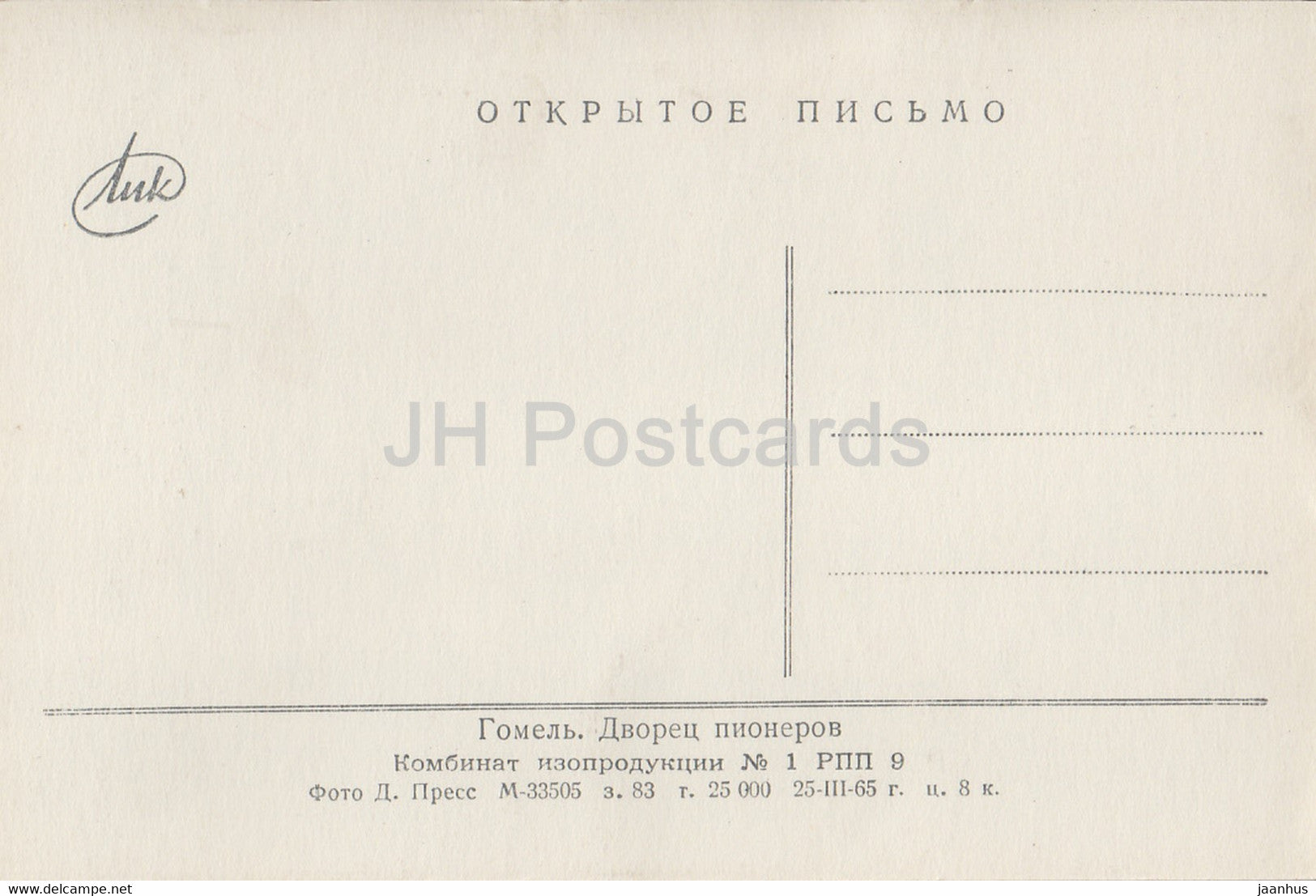 Gomel - Palais des Pionniers - 1965 - Biélorussie URSS - inutilisé