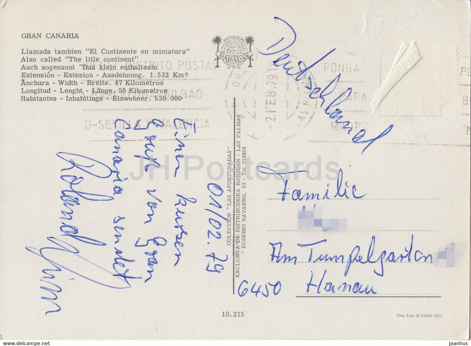 Gran Canaria - Llamada tambien El Continente en Miniatura - Aussi appelé Le Petit Continent - carte - 1979 - Espagne - utilisé