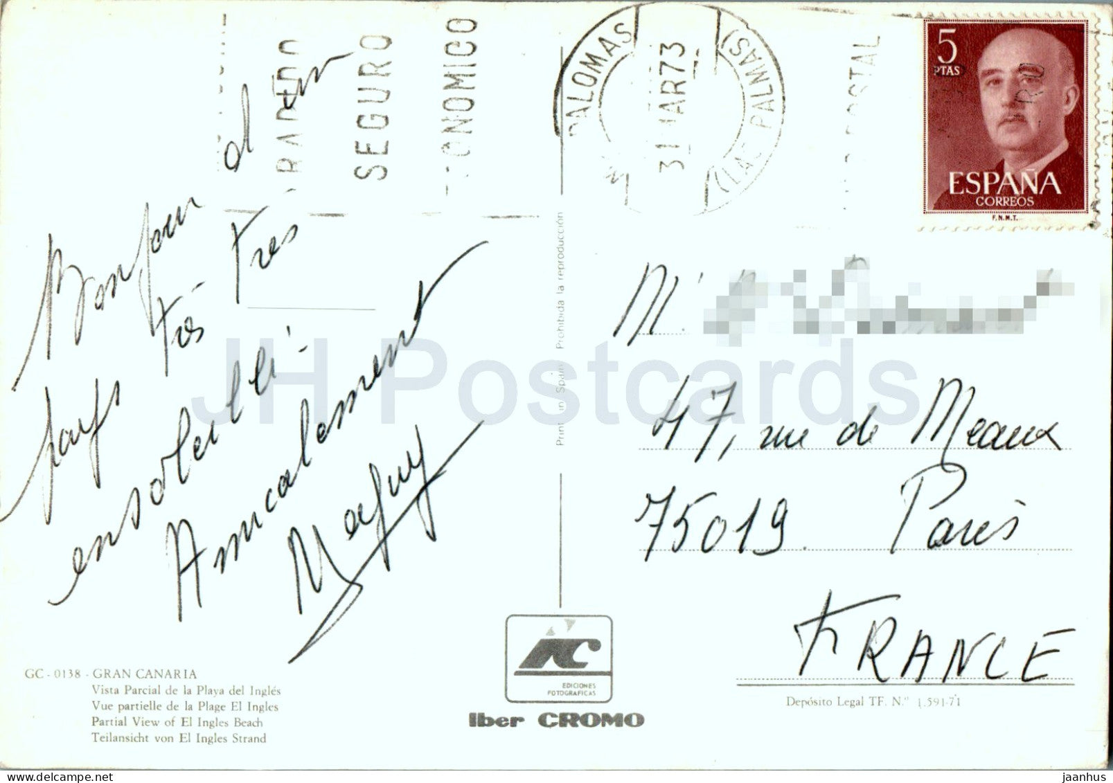 Gran Canaria - Vista Parcial de la Playa del Ingles - Vue partielle de la plage d'El Ingles - 0138 - 1973 - Espagne - utilisé