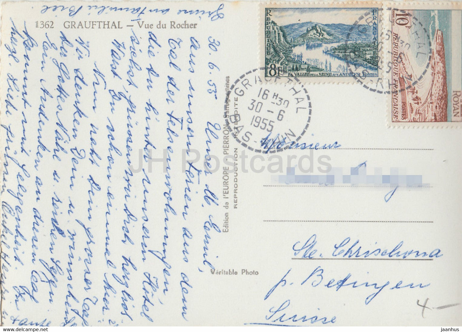 Graufthal - Vue du Rocher - bus - carte postale ancienne - 1955 - France - occasion