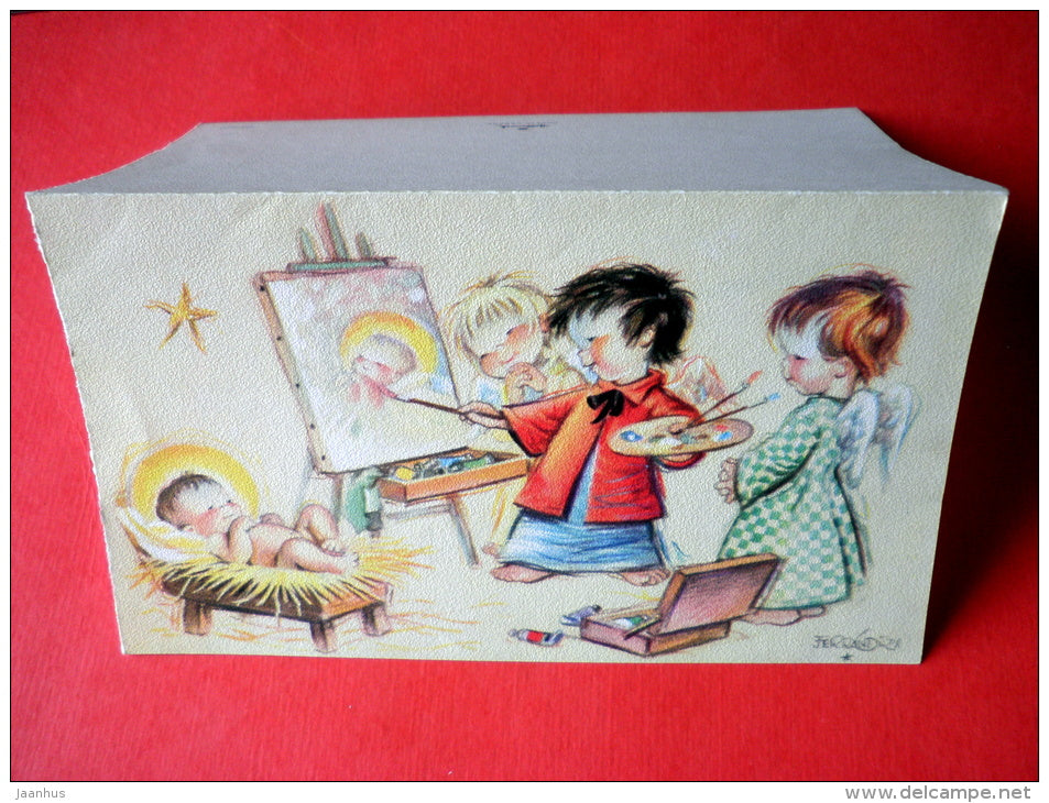 carte de voeux - Peinture pour enfants - bébé - imprimée sur papier de soie - Canada - inutilisée