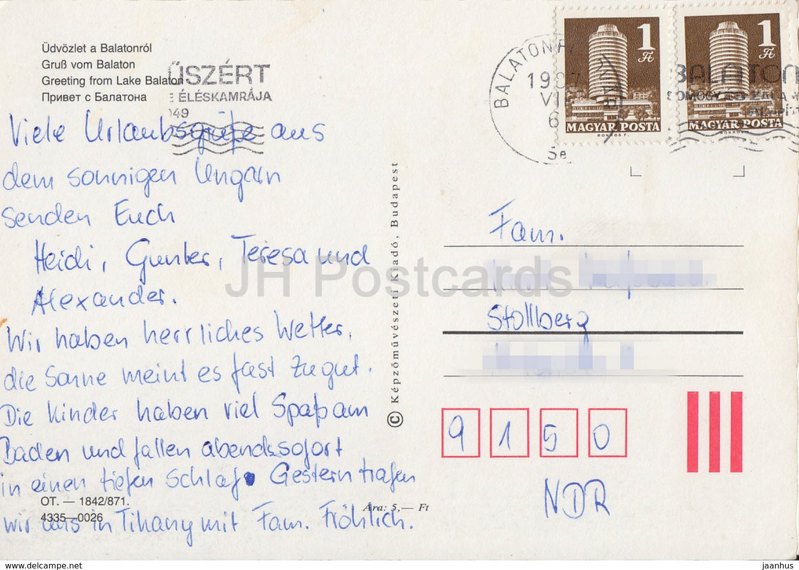 Salutation du lac Balaton - 1 - bateau à voile - hôtel - multiview - 1987 - Hongrie - utilisé